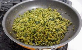 茎をみじん切りにして、ごま油、だしの素、しょう油、かつお節、白ごまで味付けしたものなんですが、