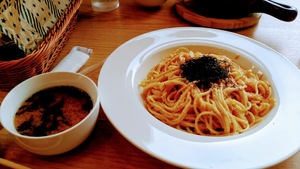 たらこパスタと、コーヒーをいただきました![]()