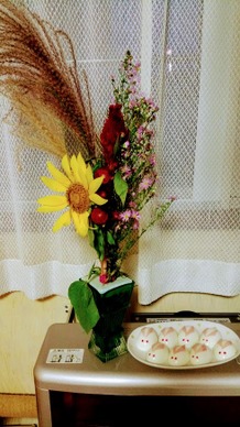 なんだか仕事あったりで忙しく、おまんじゅうも買わず、今年はゆで卵のうさぎのみを飾るという手抜き![]()
