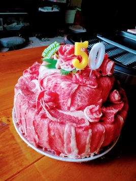 大台50歳の記念に、肉ケーキを作ってみました![]()