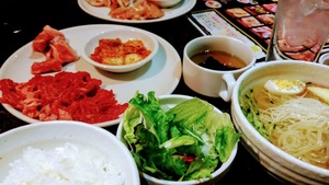 食べ放題もありますが、好きな肉2種類(グラム数も選べる)と冷麺のセットにしました。
