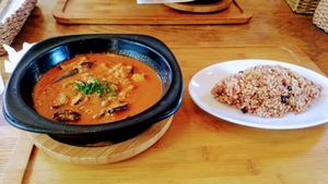 私は、本日のカレーのナスとひき肉のカレーに酵素玄米ご飯![]()
