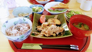 画像は、日替わりランチ(だったかな?)で、小鉢がいろいろ付いて、目にも楽しく、女子が好きなセットです。