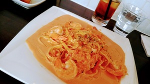 ここは、メニューもたくさんあって迷っちゃうくらい。画像は、カニとエビのトマトクリームパスタ。