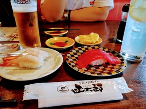 ちょっぴり、お寿司をつまみに、また乾杯![]()